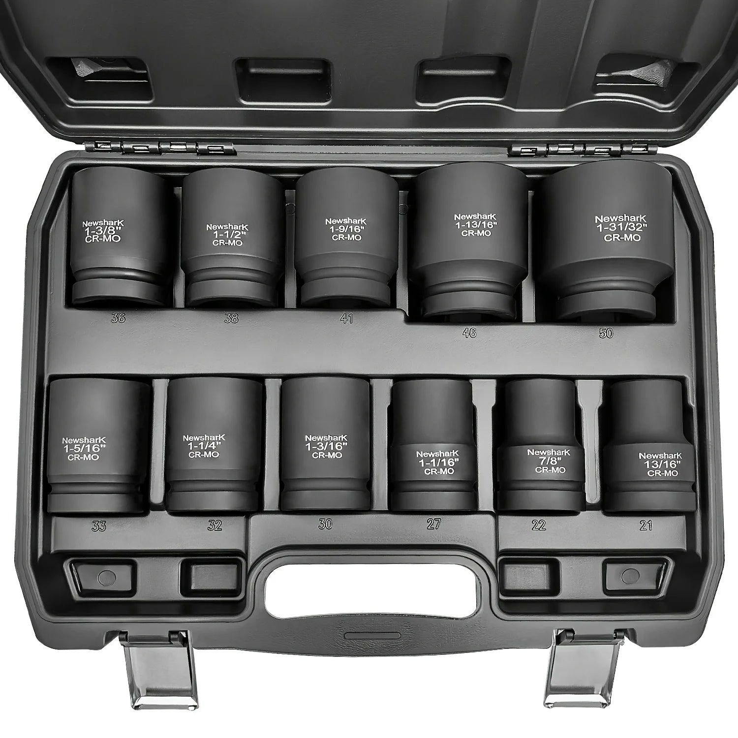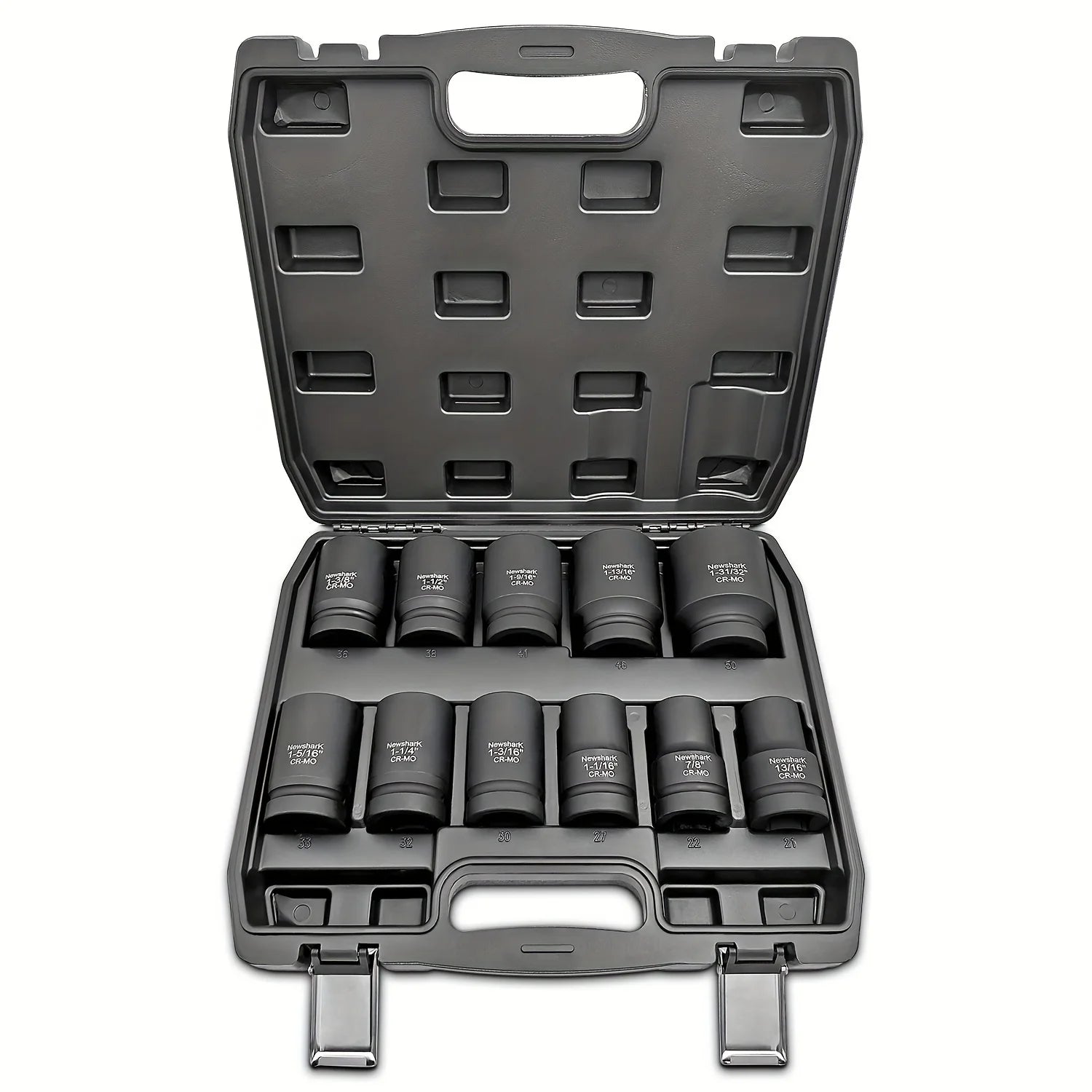 11 Piece Deep Socket Set SAE 1 5 16 To 1 31 32 Inches 6 Point CR Mo Spindle Axle Nut Impact Socket Set for Auto and Home Repair