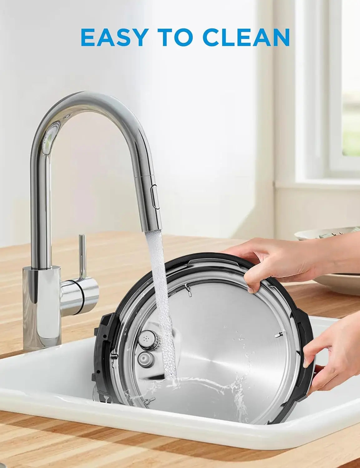 - Advanced Protection: Equipped with the advanced REALSAFE SYSTEM, this 9-in-1 safety protection features pressure limit, over temperature, and overpressure automatic release, so you can cook with peace of mind.