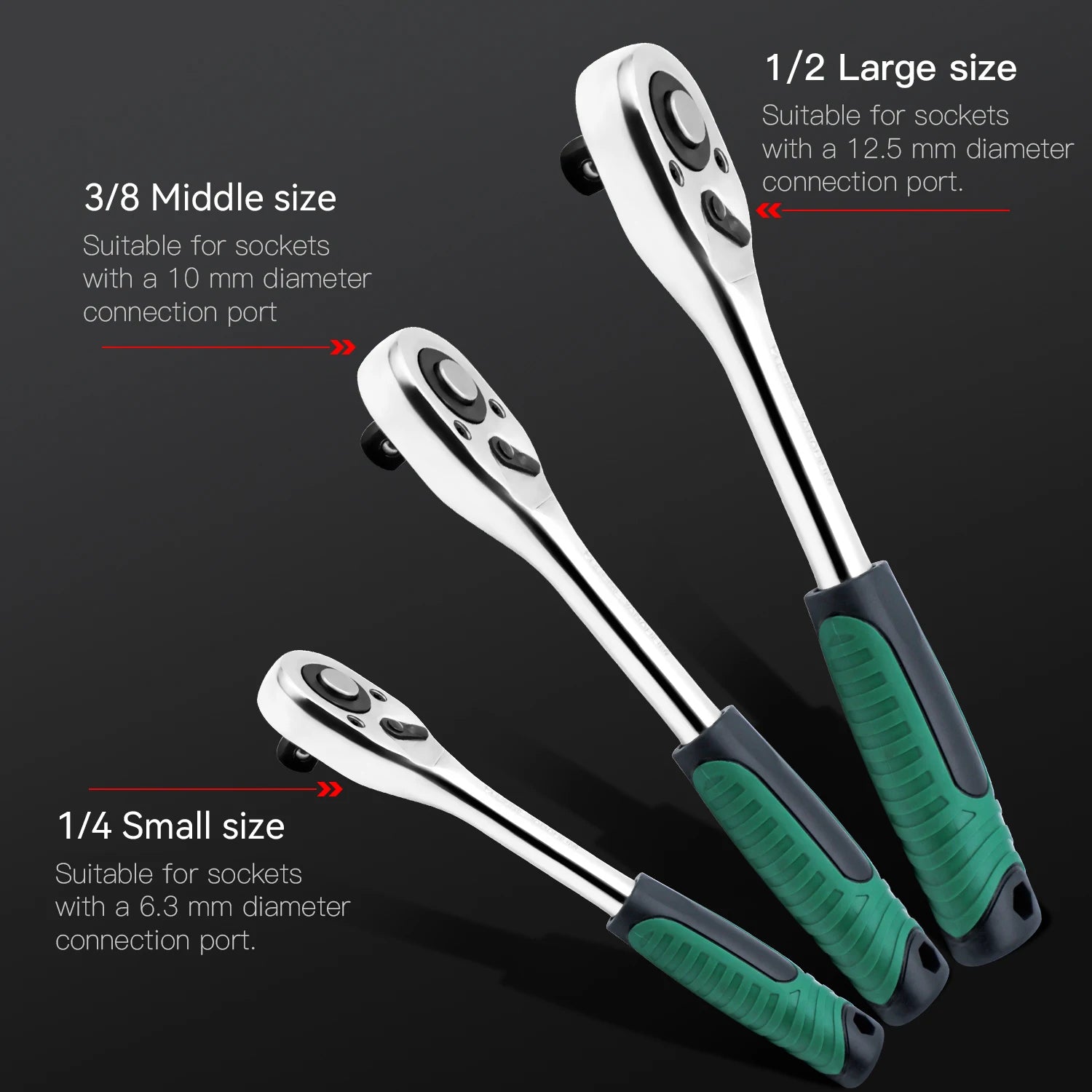 - Three Ratchet Sizes: The inclusion of 1/2, 1/4, and 3/8 inch ratchet wrenches allows for efficient handling of bolts and nuts of different sizes, enhancing your productivity.