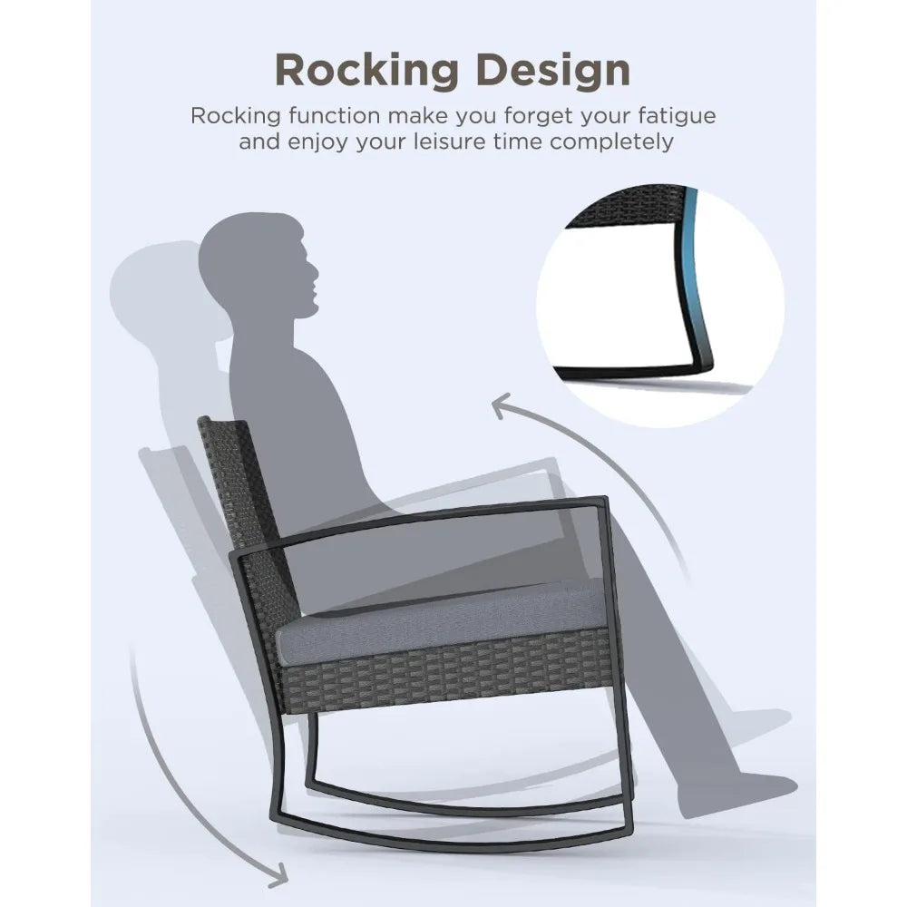 3 Pieces Patio Furniture Set Rocking Bistro Set Outdoor Rattan Conversation