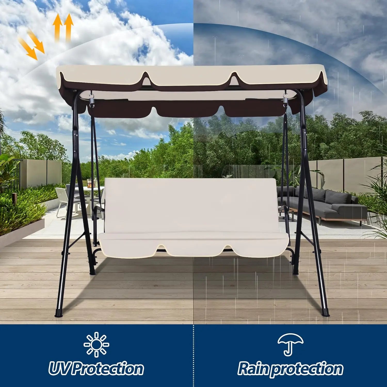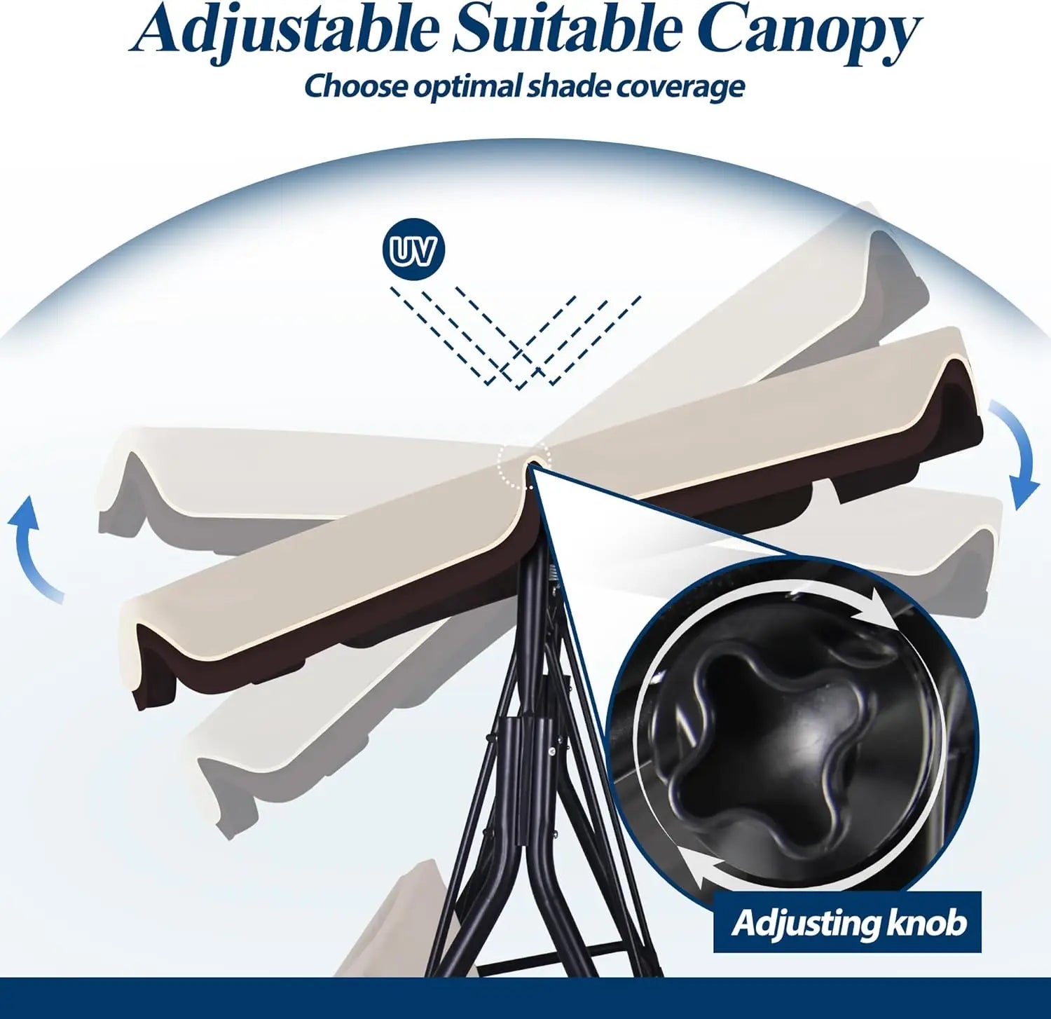 3 Seat Outdoor Porch Swing with Adjustable Canopy and Durable Metal Frame Garden Swing Chair