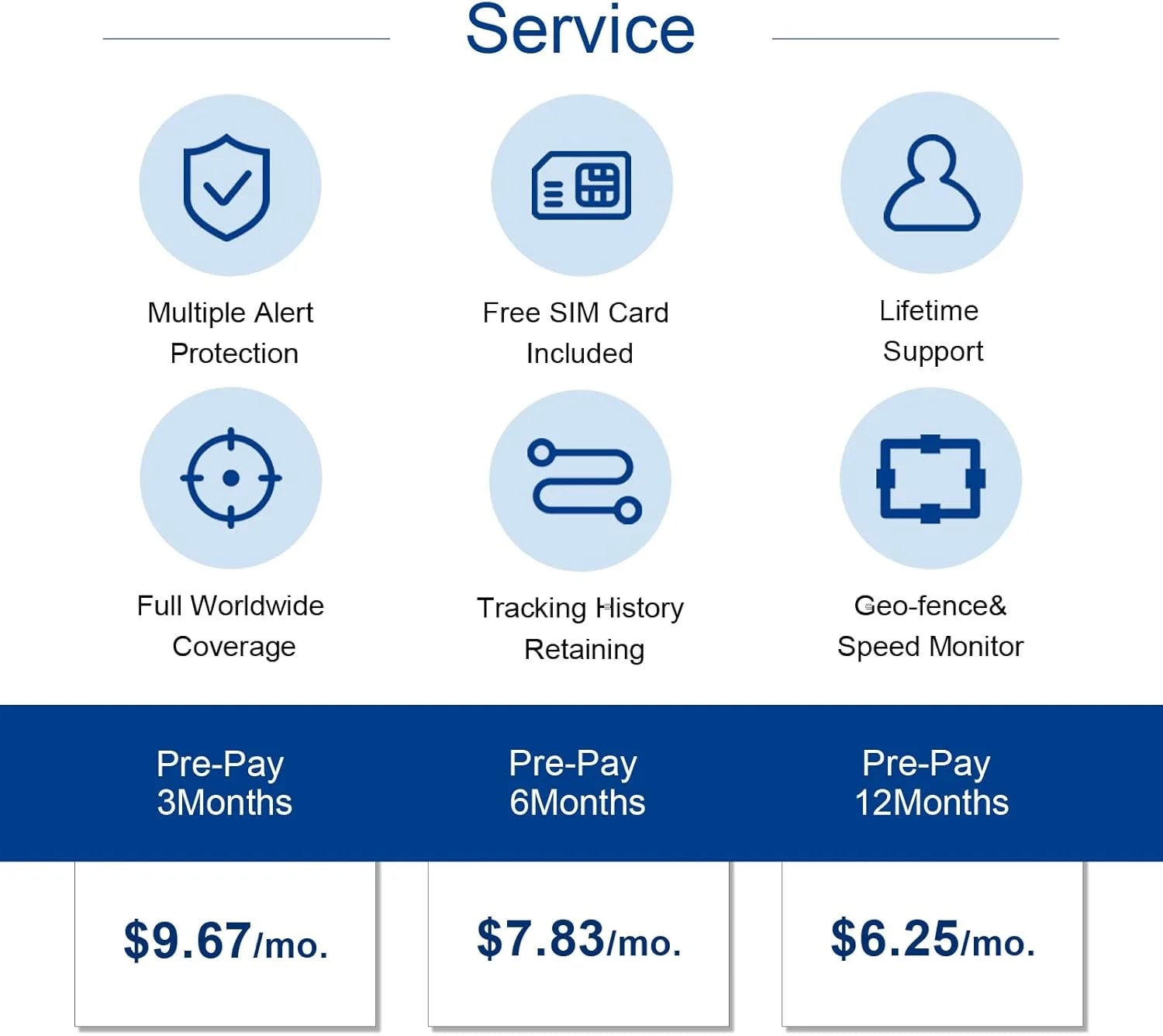 This GPS tracker is lightweight and easy to attach, featuring a silicone clip for secure fixation and convenient magnetic charging. As part of the TrackerOne family, you can enjoy a free trial period and subscription plans that offer ongoing support, including system maintenance, connectivity, and expanded features for optimal performance.