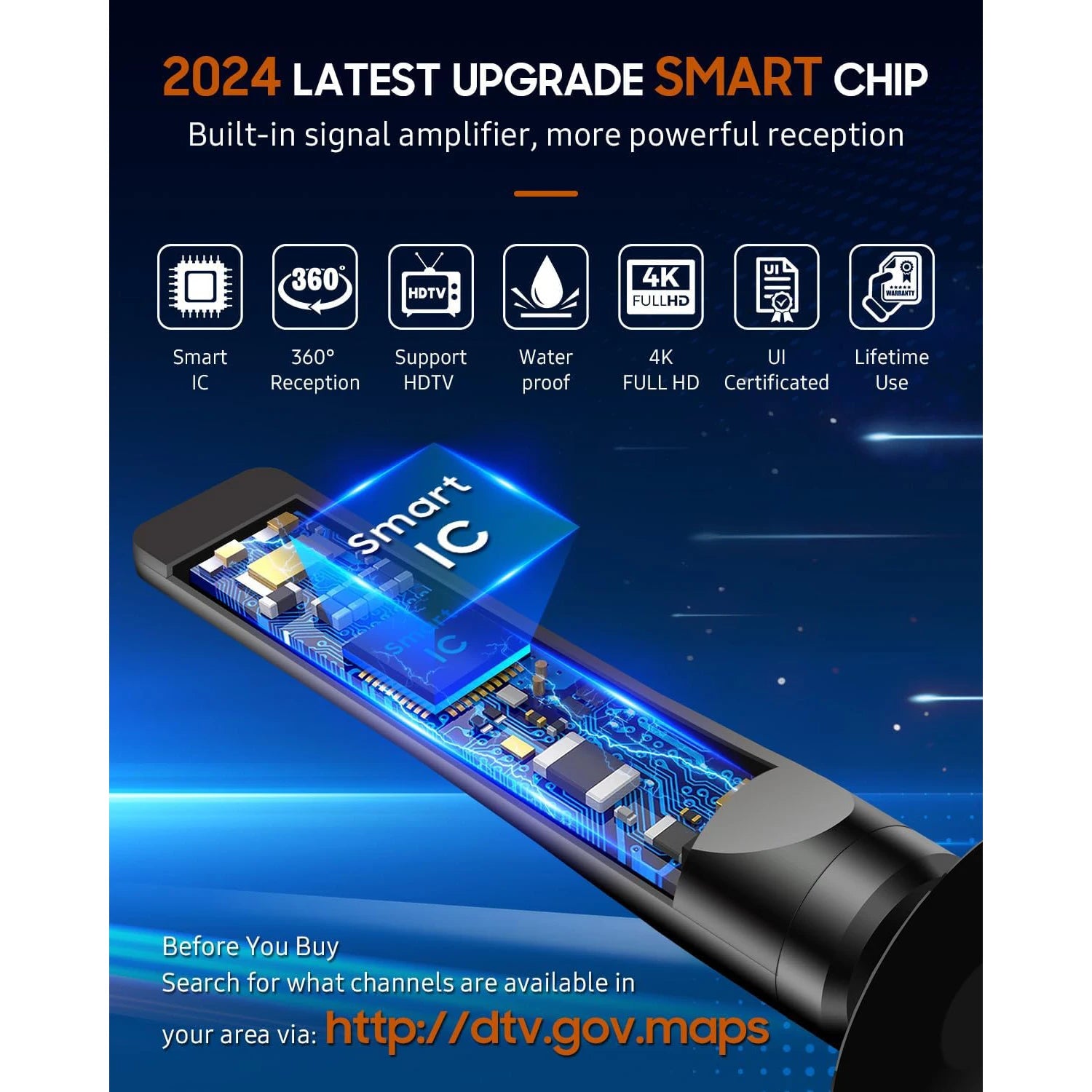 6000 Miles HD TV Antenna for Smart TVs and All Digital TVs with 4K 8K Support and 36DB Signal Booster