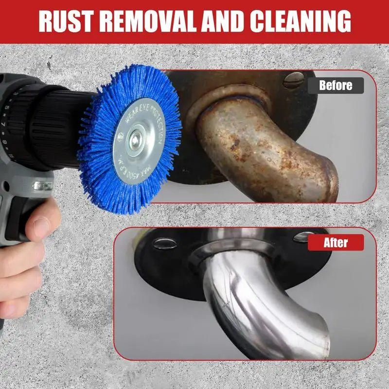 Attach the brush to a compatible drill, run at conservative speeds, and apply light, steady pressure. Let the abrasive action do the work, and always follow the drill manufacturer’s safety guidelines. Always wear eye protection and gloves during operation.