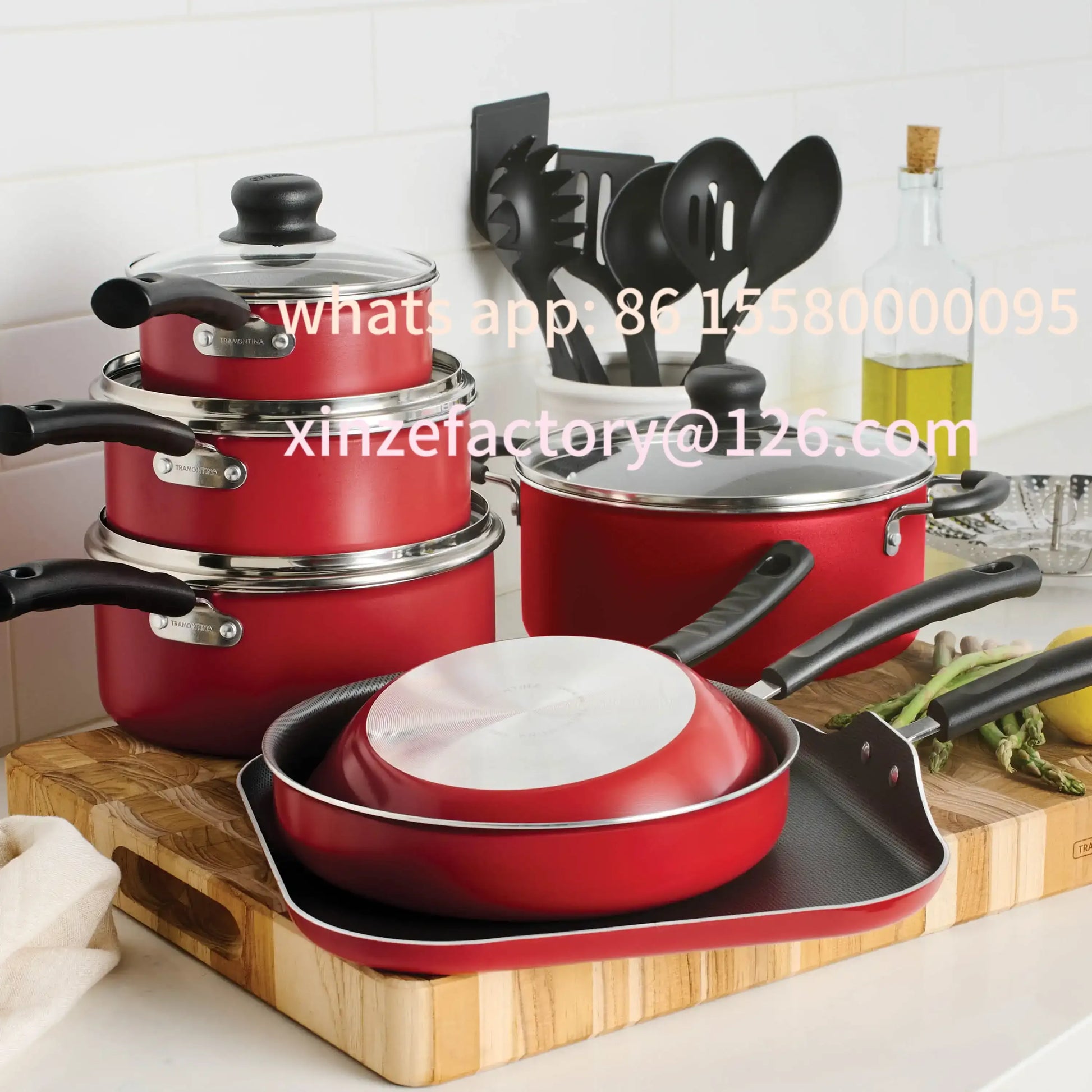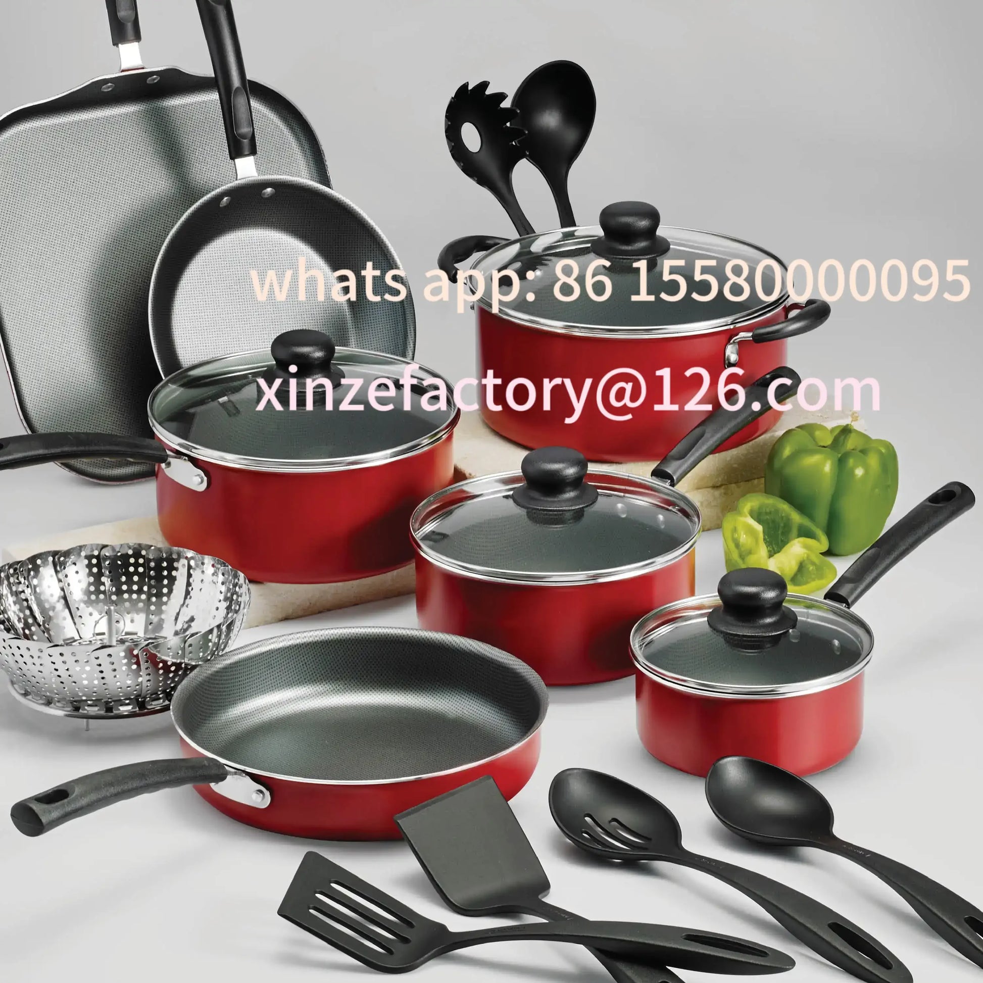 Customizable Nonstick Cookware Set 18 Piece Red Kitchen Essentials