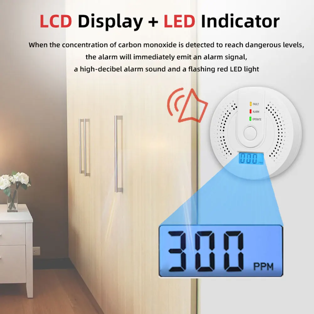 Digital Carbon Monoxide Detector Sound Warning & LED Indicator Battery Powered CO Gas Monitor Alarm Detector for Home Warehouse