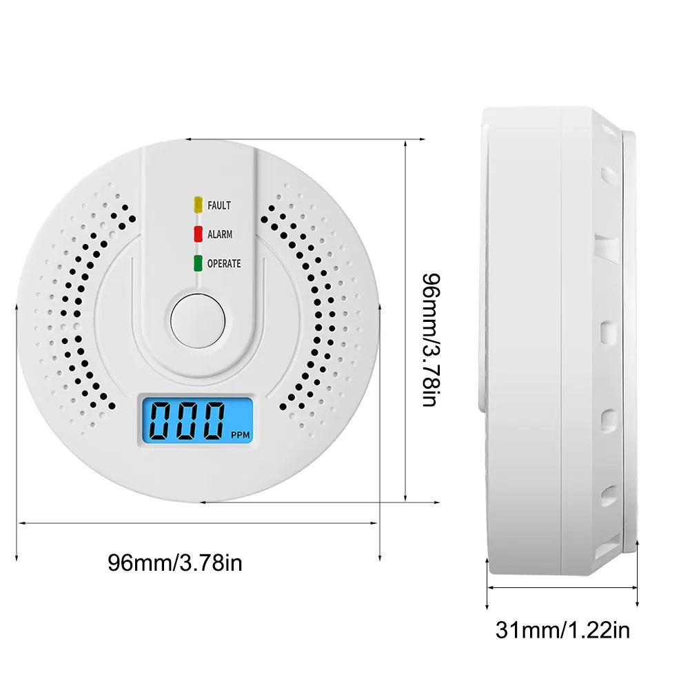 Feature: 1. Advanced Electrochemical Sensor: The carbon monoxide detector utilizes an advanced electrochemical sensor that accurately detects CO levels and responds quickly to prevent carbon monoxide poisoning. Install one on every level of your home and in each bedroom to ensure comprehensive protection. 2. Travel-Friendly Design: The portable CO detector is perfect for travel, easily fitting into your luggage for use in hotels, boats, airports, motels, RVs, and cruise ships. Its compact size ensures that you can stay safe from CO poisoning wherever you go. 3. Easy Operation with Immediate Alerts: The CO alarm is straightforward to use with a single test/reset button. It features a flashing red LED light to alert you when dangerous levels of carbon monoxide are detected, ensuring your safety at all times. Please note, the unit requires 2 batteries, which are not included. 4. Simple Installation and Portable: The co gas monitor alarm detector is easy to install and small enough to carry with you, making it ideal for placement anywhere without reliance on electrical outlets, thus remaining operational even during power failures. 5. Versatile Use and Placement: This carbon monoxide detector can be installed in a wide variety of locations, including residential homes and public places, providing essential safety monitoring wherever it is needed. Its versatility makes it an ideal choice for ensuring the safety of both families and visitors in any environment. Specification: Smart home platform: none Type: Carbon Monoxide Detectors Certification: CE Origin: Mainland China Power supply: 2 AA batteries (not included, need to bring your own) Shell material: ABS Product size: 96.00x96.00x31.00mm Product size: 3.78x3.78x1.22inch